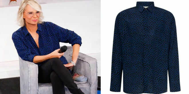 Domenica 18 settembre 2022 in occasione della prima puntata di Amici 22, Maria De Filippi ha indossato una camicia Yves Saint Laurent in pura seta. Nera con pois blu, la camicia era molto larga e probabilmente si tratta di un capo unisex, visto che sul web lo indossano anche gli uomini. Il prezzo è proibitivo: ben 790 euro!